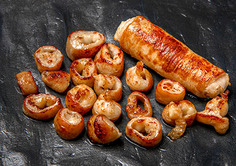 익어가는 고기는 겉은 바삭하고 속은 촉촉